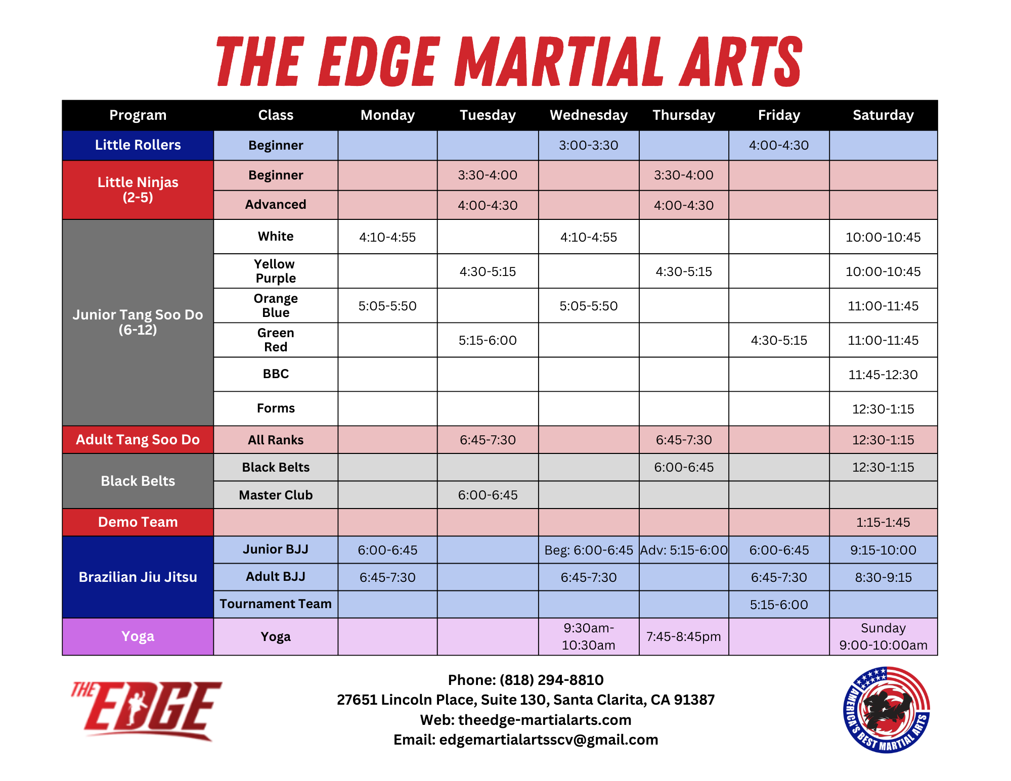 Edge Class Schedule