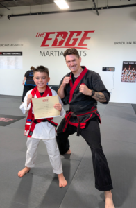 Over the past three years, Jax has shown tremendous growth, not only physically, but mentally and emotionally as well. Through consistent training with Master Prager and the outstanding instructors at The Edge Martial Arts, he has developed essential life skills such as courage, discipline, teamwork, and self-defense. Most importantly, Jax has learned how to believe in himself both on and off the mat.